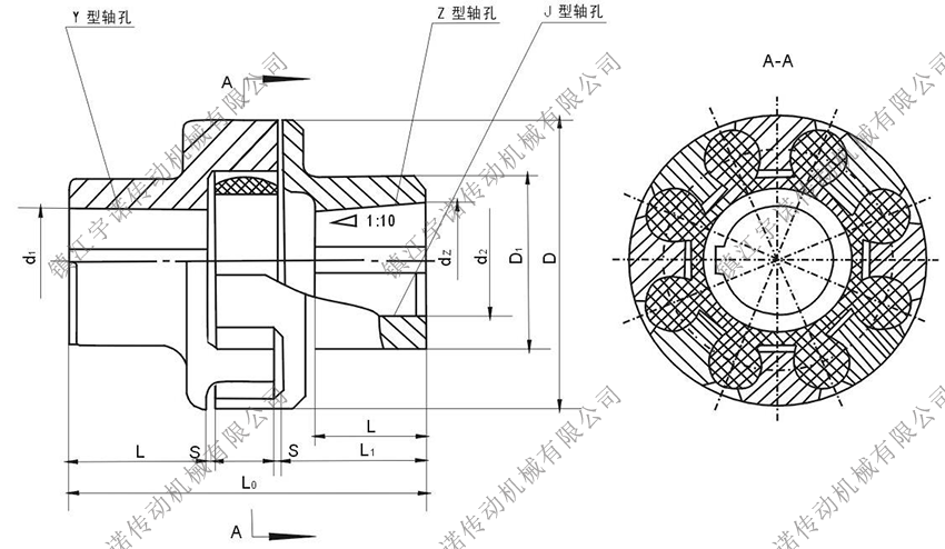ML型基本型梅花形彈性聯(lián)軸器是由兩個(gè)帶凸爪形狀相同的半聯(lián)軸器和彈性元件組成,利用梅花形彈性元件置于兩半聯(lián)軸器凸爪之間,以實(shí)現(xiàn)兩半聯(lián)軸器的聯(lián)接。基本型梅花形彈性聯(lián)軸器更換彈性元件時(shí)兩半聯(lián)軸器需要沿著軸向移動(dòng)才能達(dá)到更換彈性元件的目的。