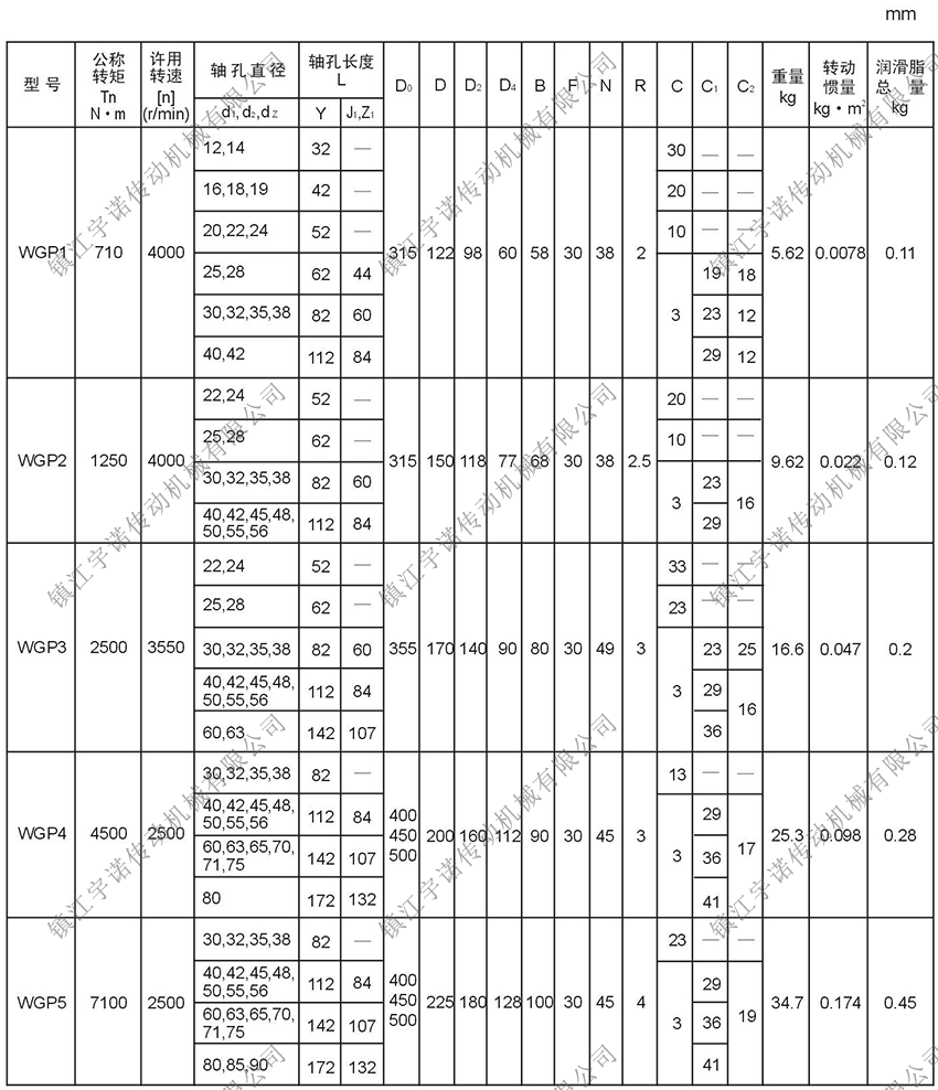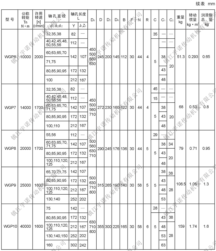 WGP型帶制動(dòng)盤鼓形齒式聯(lián)軸器是由齒數(shù)相同的內(nèi)齒圈和帶外齒的凸緣半聯(lián)軸器等零件組成。外齒分為直齒和鼓形齒兩種齒形,所謂鼓形齒即為將外齒制成球面,球面中心在齒輪軸線上,齒側(cè)間隙較一般齒輪大,鼓形齒聯(lián)軸器可允許較大的角位移(相對(duì)于直齒聯(lián)軸器),可改善齒的接觸條件,提高傳遞轉(zhuǎn)矩的能力,延長使用壽命。有角位移時(shí)沿齒寬的接觸狀態(tài)。該聯(lián)軸器適用于聯(lián)接水平兩同軸線傳動(dòng)軸系,制動(dòng)盤直徑315-1000mm,傳遞公稱轉(zhuǎn)矩710-160000N.m。